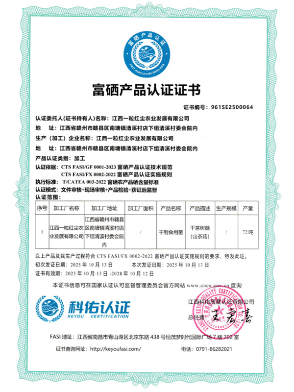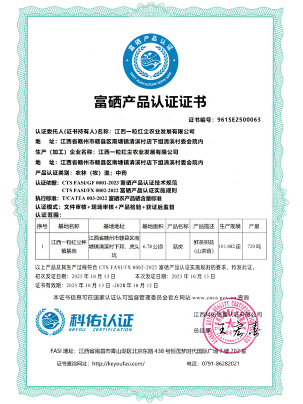 江西一粒紅塵農業發展有限公司是一家總部位于江西省贛縣的現代農業多元型企業,專注于食用菌的研發種植、深加工、貿易、研教培農文旅等全產業鏈發展。公司秉承“健康綠色、共享、共贏”的核心價值觀,致力于引領鄉村振興之路,旨在成為......